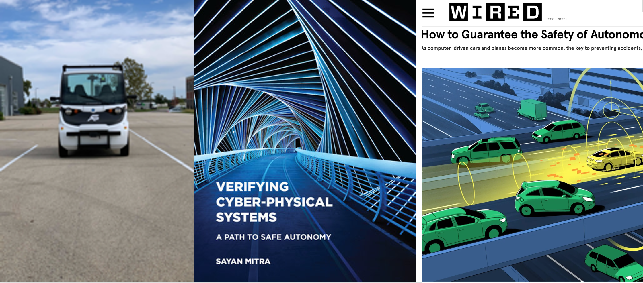 - Verifying Cyber-Physical Interactions in Safety-Critical Systems. Sayan Mitra, Tichakorn Wongpiromsarn, and Richard Murray. In a Special Issue of IEEE Security & Privacy Magazine on Safety-Critical Systems, June 2013.