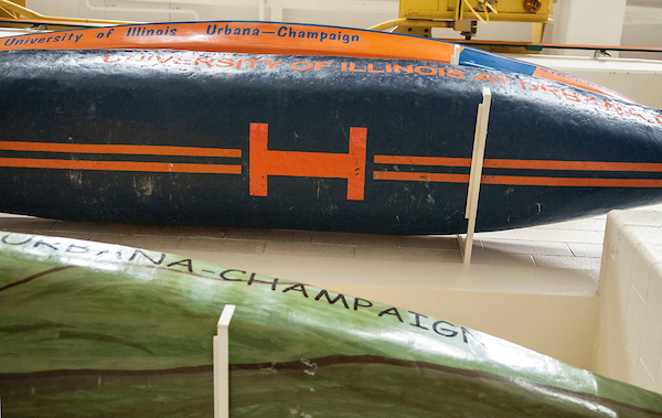 Concrete Canoes: What began as a professor's idea for an interesting project is now a more than 50 year tradition – the concrete canoe. In May 1971, Civil students brought their 370-pound concrete project to Kickapoo State Park, IL, after agreeing to a challenge brought by students at Purdue University. It is now a global competition with students from universities all over the world. Enter the first floor and look up to see some of our famous concrete canoes.