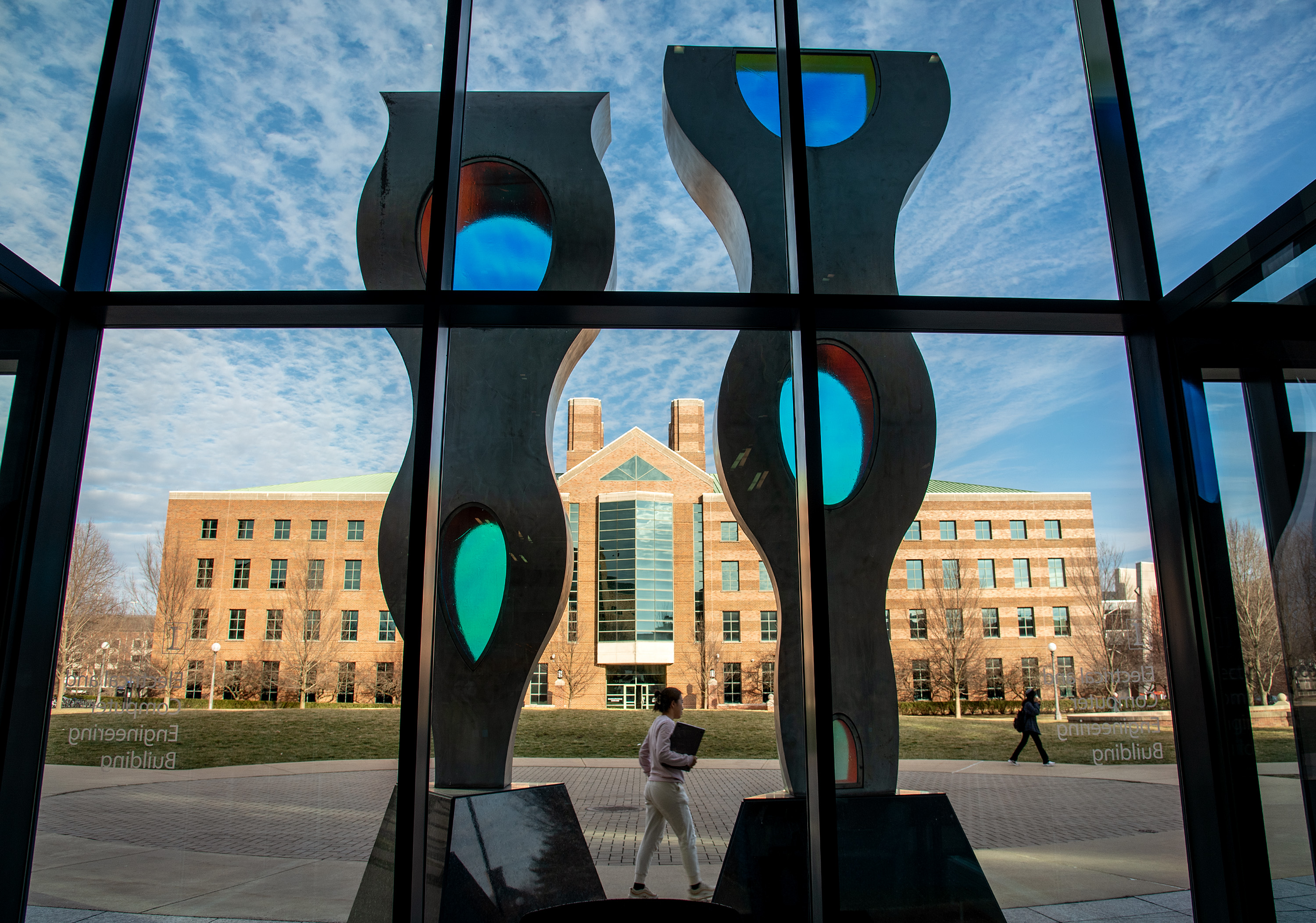 Diss Connections: On the west side of the ECE building, look for the sculpture titled “Diss Connections” by sculptor John Adduci. The artist described the bronze and stainless-steel sculpture as a simple and symbolic representation of the connections engineers make in their work.