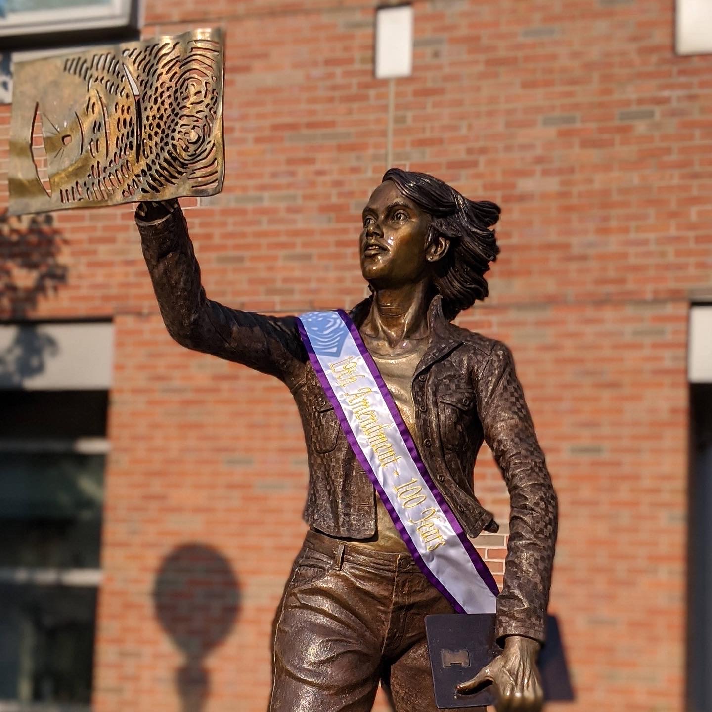 “The face, the expression is one of wonder, exploration and knowledge, one of curiosity and perseverance,” the artist told the Daily Illini at the unveiling in 2017. “…She represents a multi-racial female, a young professional at work…always thinking, on the move.”