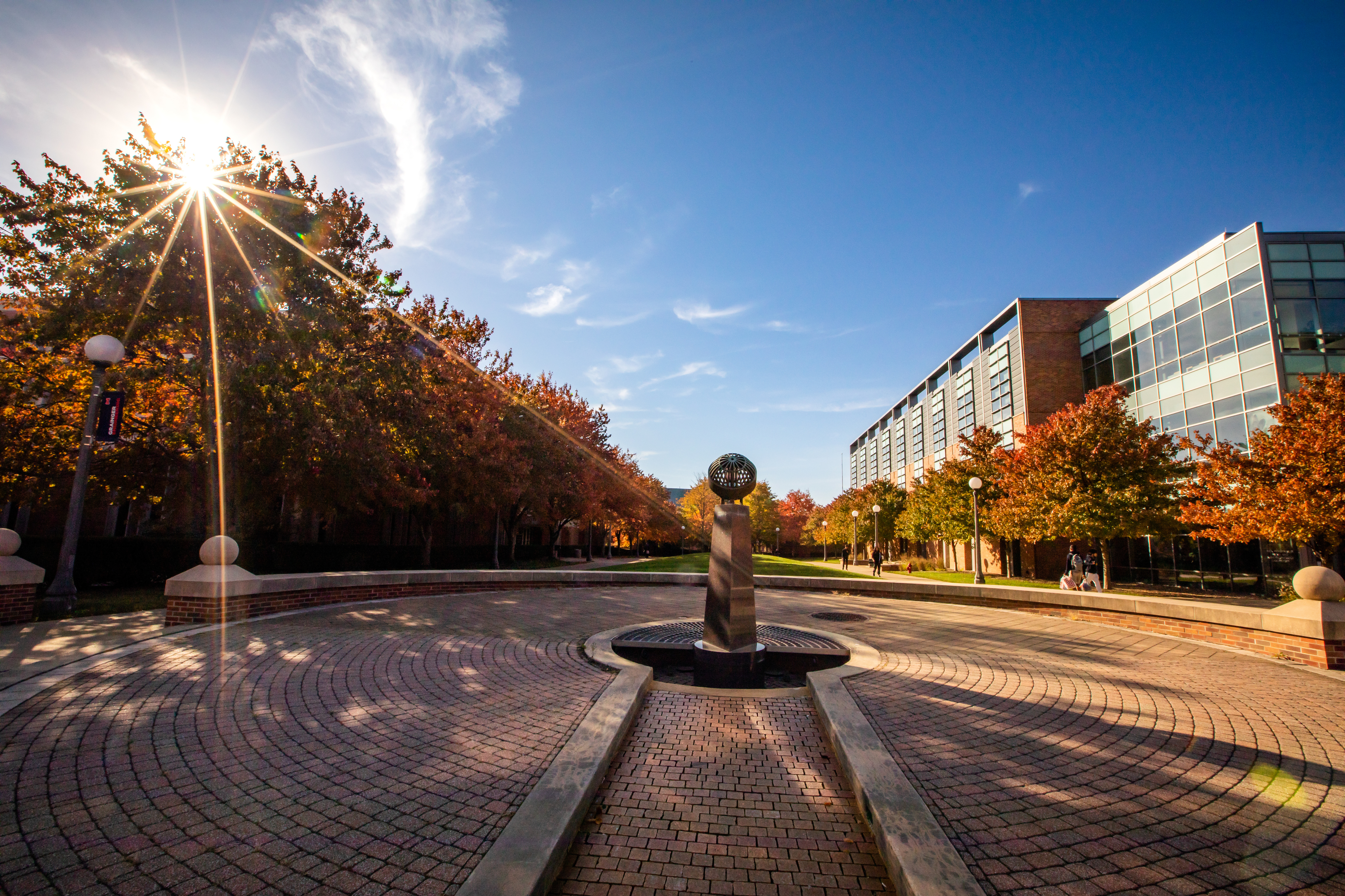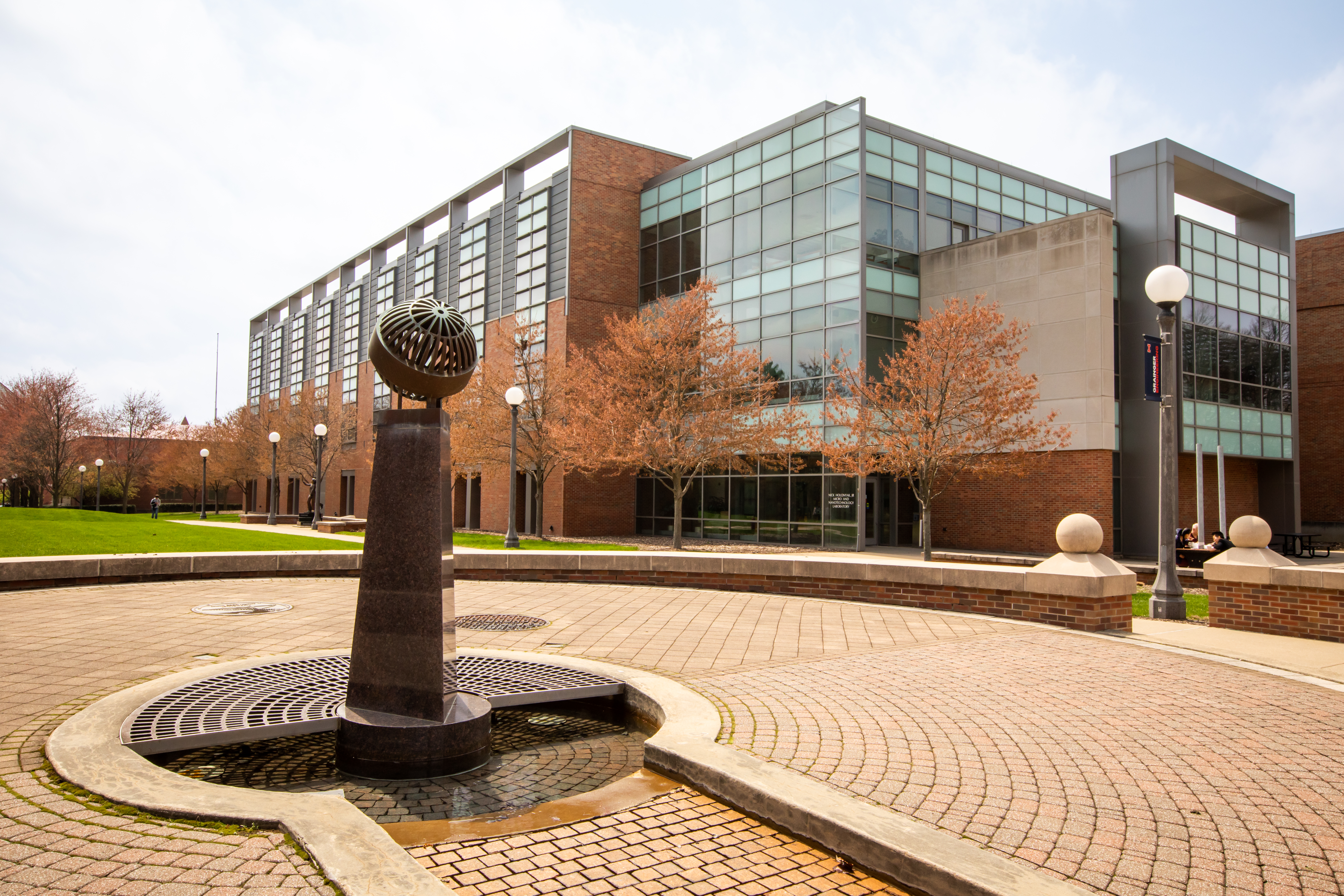 Upwells: The sculpture titled Upwells is found in the courtyard to the east of HMNTL. Essentially a large sundial, Upwells is comprised of the upright shaft, known as a gnomon, and the dome shaped fountains, which are solstice and equinox markers. Created by artist Stephen Luecking, the bronze and granite centerpiece aligns with the north-south axis of the Urbana campus.