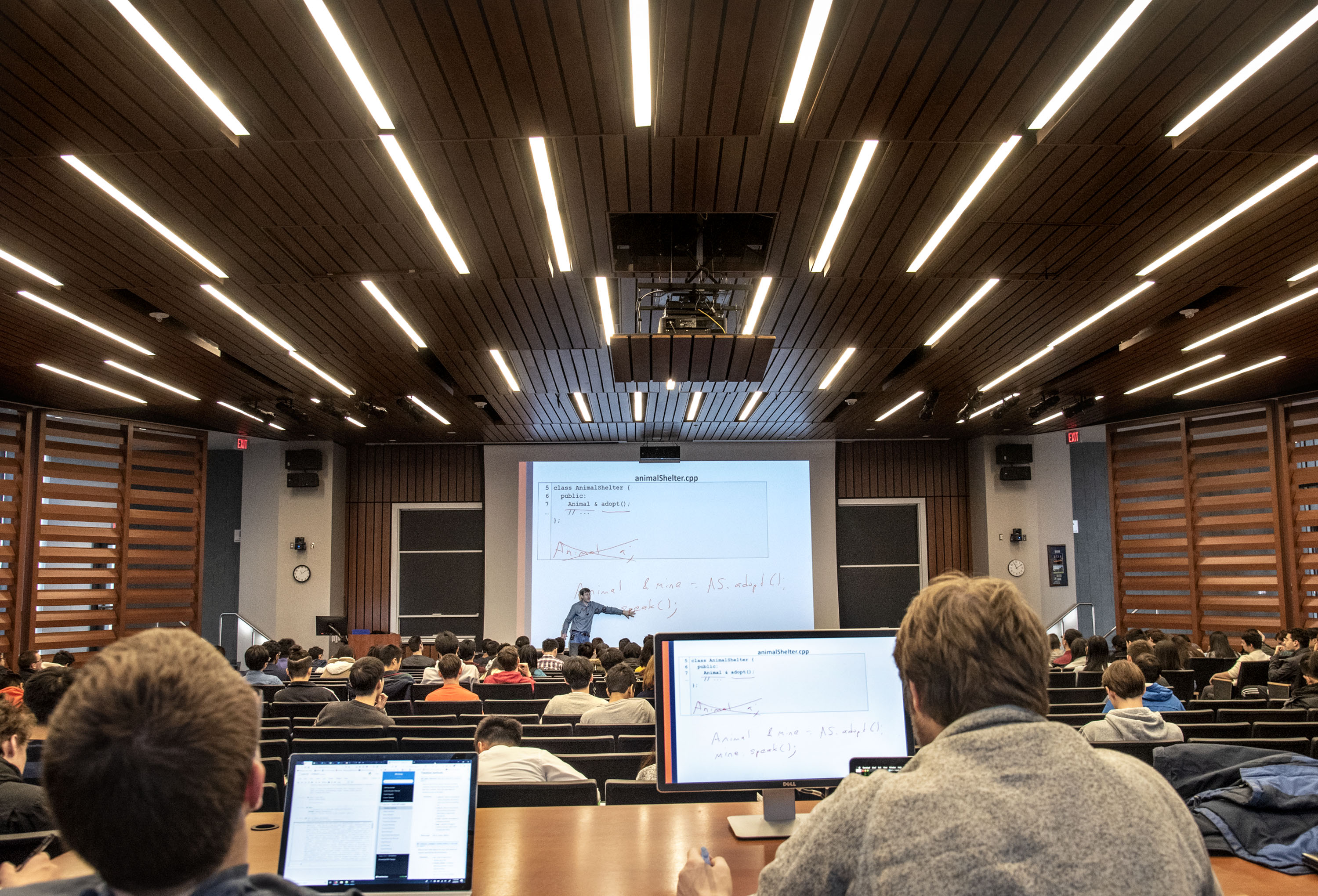 Freshman Launch groups Saturday, August 24, 2019. Students test their VR skills in CS 498: Virtual Reality at the VR Lab at Siebel Center for Computer Science in Urbana on Wednesday, Feb. 19, 2020. Ganpath Karl, an Electrical Engineering major, works on soldering in the Advanced Power Applications Lab at ECE on Monday, March 4, 2019. Karl is involved with a sustainability project and has been active with Innovation, Leadership & Engineering Entrepreneurship (ILEE) and iVenture Accelerator. Students gather to study and work in the Grainger Library overlooking the Bardeen quad on November 29, 2017. The sun's rays stream through the large windows of Geoffrey Yeh Student Center at Newmark Hall as students review classroom work in bright surroundings in Urbana on Wednesday, Feb. 19, 2020. The Civil Engineering student seen here is working on his master's degree, which he will receive in the summer of 2020. Students in ME 370 test their robots one last time, challenging them with rough terrain, during their finals at the Materials Science and Engineering Building in Urbana on Tuesday, Dec. 11, 2018. Members of the Concrete Canoe team row against strong winds as they use wooden boats for practice during their Paddling Team Meeting at Crystal Lake Park in Urbana on Saturday, Oct. 20, 2018. Project manager, Darren Liu, a senior in CEE, is determined to help his team reach nationals in spring 2019 with this year's design. Last year they took fourth place in regionals. The top two teams in regionals go on to compete in nationals. Last year's concrete canoe, featuring a pirate theme, is pictured docked at Crystal Lake during a paddling team meeting. Illinois students, faculty, staff, and the Marching Illini celebrate The Grainger Foundation's generous gift at Electrical and Computer Engineering Building in Urbana on Thursday, May 2, 2019. Students walk through the Siebel Center for Computer Science on November 1, 2017. Three students sit and work at Loomis Laboratory on November 2, 2017. Students observe a lecture taught by Professor Tim Stelzer at Loomis Laboratory on November 2, 2017. The exterior of the newly renovated Everitt Lab is seen here in Urbana on July 27, 2018. Students walk along the sidewalks of Bardeen Quad at the University of Illinois at Urbana-Champaign on November 31, 2017. Grainger Engineering students, and students across the Midwest, don glow-in-the-dark jewelry as they solve web design puzzles under black lights at Caterpillar's Code in the Dark. The event was part of the 36-hour HackIllinois at ECEB in Urbana on Saturday, Feb. 29, 2020. The Association for Computer Machinery at the University of Illinois Urbana-Champaign oversees HackIllinois each year. The Off-Road Illini SAE Baja team spend part of their Saturday building vehicles for competition while at Engineering Student Projects Lab in Urbana on Oct. 6, 2018. Computer Science Engineering students proudly wear their tee-shirts. Incoming freshmen and transfer students enjoy food, games, and mingling with Engineering professors and other students at Bardeen Quad during Launch! in Urbana on Saturday, August 25, 2018. Undergraduate students with Women in Engineering work together at the Mechanical Engineering Lab's Innovation Studio in Urbana on Thursday, Nov. 14, 2019. Picture from left are: Ashley Mitchell, Delanie Steinweg, Michelle McCord, and Jamie Milota. Craig Zilles, associate professor of Computer Science, teaches CS 225 Data Structures at Grainger Auditorium at ECEB in Urbana on Monday, Feb. 4, 2019.Grainger Engineering Visit Presentations