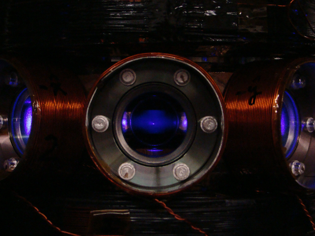 The white "dot" in the center of the photograph is the cold Dy cloud. At 100 μK, the atomic gas in Lev's MOT is a million times colder than room temperature.