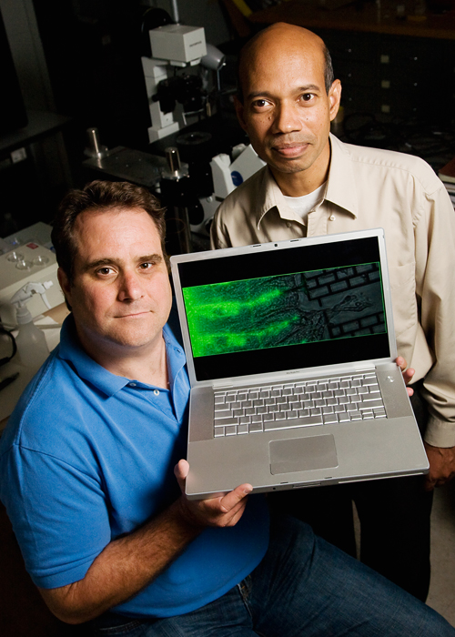 The discovery was made almost by accident, said Saif said. In a study of fruit fly embryos, Siechen wanted to know whether severing the growing end of an axon would prevent it from reaching its target, a nearby muscle cell. After severing the axon, he watched the growing tip of the axon, called the growth cone, continue to grow toward and touch the muscle cell. But when he stained it, he noticed that the vesicles in the axon tip were dispersed, not clustered together near the synapse as they normally are.
