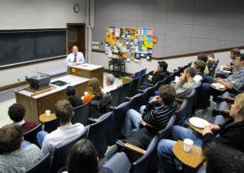 The “It” Sanders refers to is the U.S. nuclear renaissance. There’s been a lot of talk about “it” in the past decade, Sanders maintains, but now is the time for action. For example, he believes, U.S. industry could now exploit a considerable worldwide market by building inside factories smaller, more affordable reactors that could then be deployed in the field. These “right-sized” reactors could provide nuclear energy benefits to all nations while simultaneously eliminate the need for those nations to produce materials of proliferation concern. Sanders’ advocacy for these opportunities was the subject of his seminar talk, “Global Energy Needs: Defining a Role for a ‘Right-Sized Reactor’.”