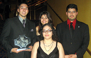 Joseph Gonzalez, an AE senior and president of the Urbana student chapter, was named the SHPE National Student Role Model of the Year. The Student Role Model of the Year is the highest award the Society gives to a SHPE student member. The award recognizes the honoree’s outstanding contributions to his or her SHPE student chapter and the Hispanic community as well as academic excellence. Gonzalez was presented with the award at the GALA Banquet at which he addressed over 1,500 students and professionals in attendance. Gonzalez was also a part of SHPE|UIUC’s academic Olympiad team that took first place honors. The University of Houston took second and the University of California, Berkeley, third.