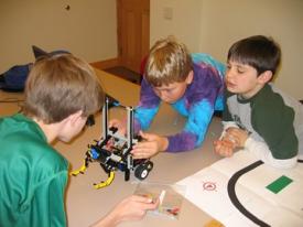 The youth teams are engineering their robots to transport a small plastic ball from one end of a 96-inch table to the other while using sensors to avoid obstacles along the way. Upon finishing the course, the robots are to perform a victory dance to music.