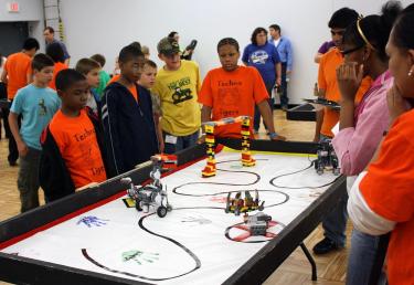 Youth teams engineered their robots to transport a small plastic ball from one end of a 96-inch table to the other while using sensors to avoid obstacles along the way. Upon finishing the course, the robots were designed to perform a victory dance to music. Fifteen teams representing all regions of the state participated in the event.