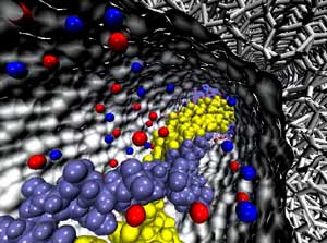 These many-atom, long-time-step simulations are a computationally expensive endeavor. Last year alone, the project required more than 7 million computing hours on Ranger, TACC’s most powerful system. In 2010, the project will use more than eight million hours on Ranger, and 10 million hours on the Department of Energy’s Jaguar system, for which Aksimentiev won a special INCITE award.