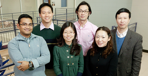 The team (front row l-r): graduate students Farhan Chowdhury and Yanzhen Li, and visiting scholar Tamaki Yokohama-Tamaki; (back row l -r), graduate student Yeh Chuin Poh, Tetsuya Tanaka, and Ning Wang,