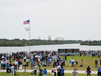 “They had some of those very same issues at the last two launches,” she said, noting her group was the fifth to officially promote a NASA shuttle launch. “It was certainly looking iffy because of the weather.”