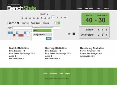 BenchStats started while Serna worked with the Illinois tennis team. Serna, who played tennis in high school and already attended most of the team’s tennis matches, volunteered to help with statistics for the University’s team, first with only pen and paper, but soon evolving into a simple PHP script.