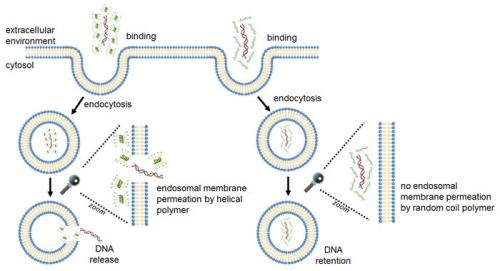 To confirm that the spiral polypeptide shape is the key to transfection, the researchers then synthesized two batches of the most efficient polypeptide: one batch with a helical shape, one with the usual random coil. The helical polypeptide far exceeded the random-coil polypeptide in both efficiency and stability.