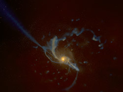 The AVL team--Donna Cox, Robert Patterson, Stuart Levy, and Matthew Hall--designed these scenes using their ultra-high-resolution 3D visualization environment and two key pieces of software they have developed: Virtual Director for interactive scene design and Amore for rendering both volume and particle data. They also used one of NCSA's supercomputers to complete computationally demanding tasks by the production deadline.