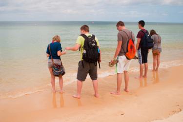GLCM students (from left) Margeaux Goff, Chas Crump, Matthew Sullivan, Ryan Altemare and Ana Lucuta enjoy the beach near Brisbane. Photo by Pedro Alvarez.