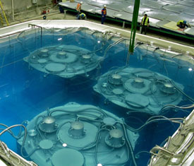 Traveling at close to the speed of light, the three basic neutrino “flavors” – electron, muon, and tau neutrinos, as well as their corresponding antineutrinos – mix together and oscillate (transform), but this activity is extremely difficult to detect. From Dec. 24, 2011, until Feb. 17, 2012, scientists in the Daya Bay collaboration observed tens of thousands of interactions of electron antineutrinos, caught by six massive detectors buried in the mountains adjacent to the powerful nuclear reactors of the China Guangdong Nuclear Power Group. These reactors, at Daya Bay and nearby Ling Ao, produce millions of quadrillions of elusive electron antineutrinos every second.
