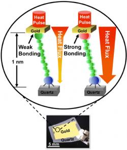 By adjusting just the composition of the molecules in contact with the gold layer, the group observed a change in heat transfer depending on how strongly the molecule bonded to the gold. They demonstrated that stronger bonding produced a twofold increase in heat flow.