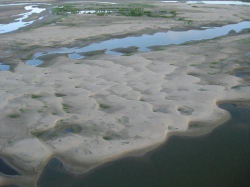 What caused such a large percentage of sand to divert to the spillway in such a small amount of water? The researchers believe that the local conditions at that point in the river hold the answer. The spillway is on the inside of a bend and adjacent to a sandbar.