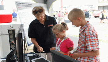 TCIPG education coordinator Jana Sebestik talks with young fairgoers.