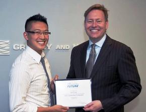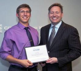 John Gage receives his completion certificate from Exec. VP and COO John Robak