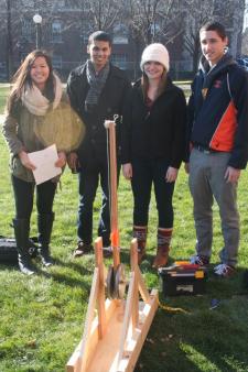 With the class only being offered in the second half of the fall semester, they decided on the trebuchet project, modeled after "pumpkin chuckin'" competitions to fit the fall theme. While the weather for the inaugural launch was 45 degrees and sunny with minimal winds, that won’t always be the case for late November in Illinois, so Lacy is hoping they can secure an indoor location with the proper height and distance for future classes.