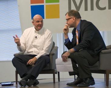Rutenbar engaged Ballmer in a brief question and answer session during the visit. They covered such topics as difficulties Microsoft overcame during its early startup days, how Chicago could help foster startups, and how the growing need for mobility will affect Microsoft and its products in the coming years.
