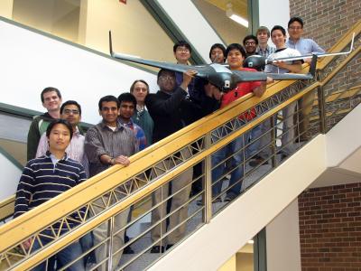 Unmanned aerial vehicles and video motion tracking have been common in the U.S. military for a decade, but the vehicles have been controlled from the ground. “We’re trying to put all the control and computations within the aircraft, itself,” said team leader Xichen Shi, an AE senior. That way, he said, “If we start the mission and lose communication (with the aircraft), we could finish the mission.”