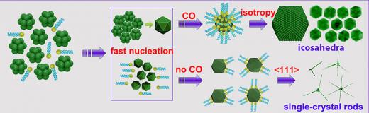 Highly uniform Pt icosahedral nanocrystals with an edge length of 8.8 nm were synthesized by Yang’s research group.They were made from platinum acetylacetonate in dodecylamine and with small amount of oleic acid using a hot injection-assisted GRAILS (gas reducing agent in liquid solution) approach. In the GRAILS approach, the inclusion of CO gas greatly facilitates the formation of well-defined shapes.