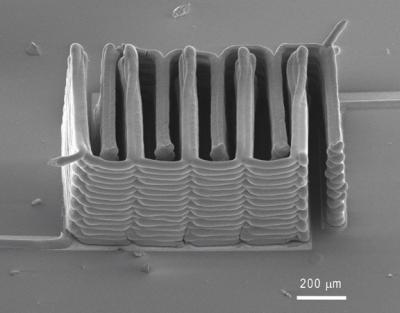 3-D printing now can be used to print lithium-ion microbatteries the size of a grain of sand. The printed microbatteries could supply electricity to tiny devices in fields from medicine to communications, including many that have lingered on lab benches for lack of a battery small enough to fit the device, yet providing enough stored energy to power it.To make the microbatteries, a team based at the University of Illinois at Urbana-Champaign and Harvard University printed precisely interlaced stacks of tiny battery electrodes, each less than the diameter of a human hair.
