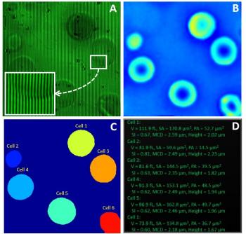 Popescu’s team is able to weigh single cells by sending light through them and gauging how the light bends in the cells. They are also able to look at their stiffness of cells and determine when their growth is disordered and even take video of cell interactions.
