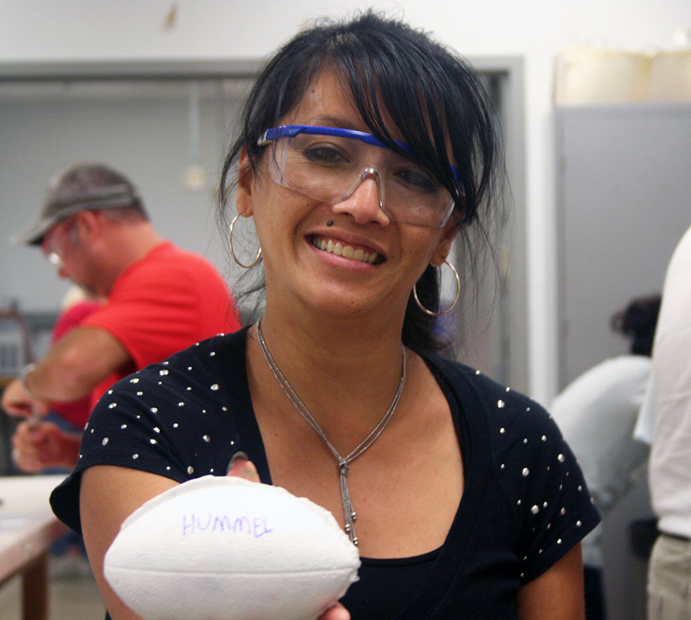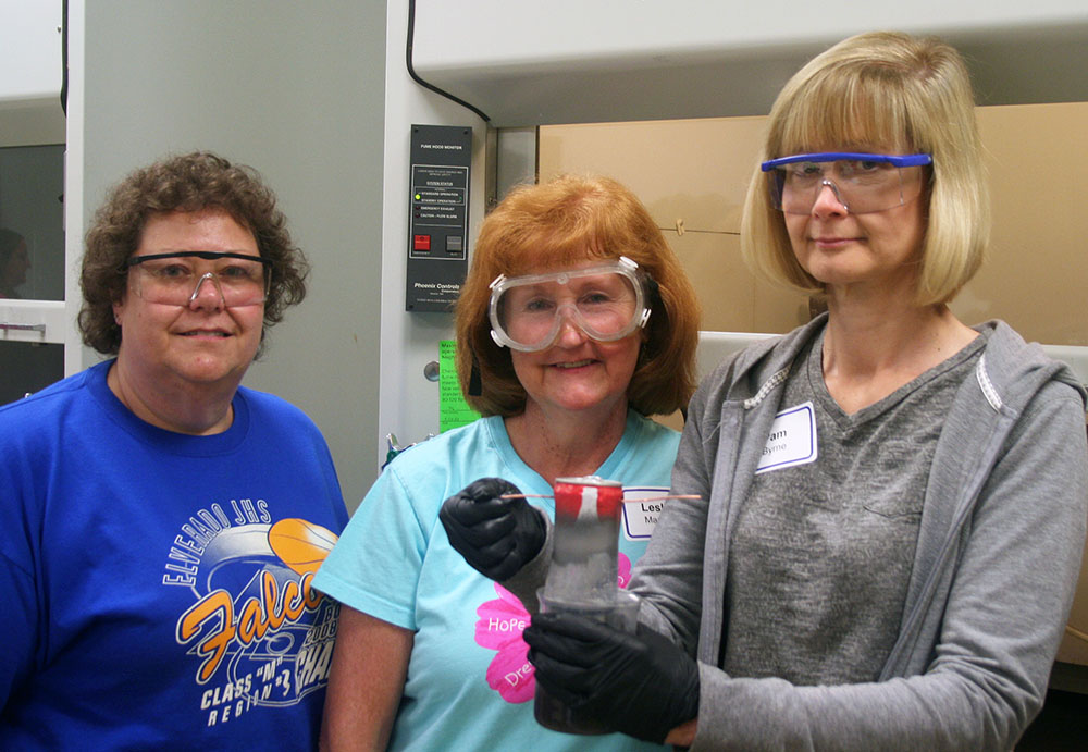 High school teachers themselves, Baello and Hummel showed the teachers methods of exciting young students about STEM learning. In the lab, camp participants conducted experiments such as dissolving the aluminum from a can of soda and creating a styrofoam football out of expanded polystyrene beads.