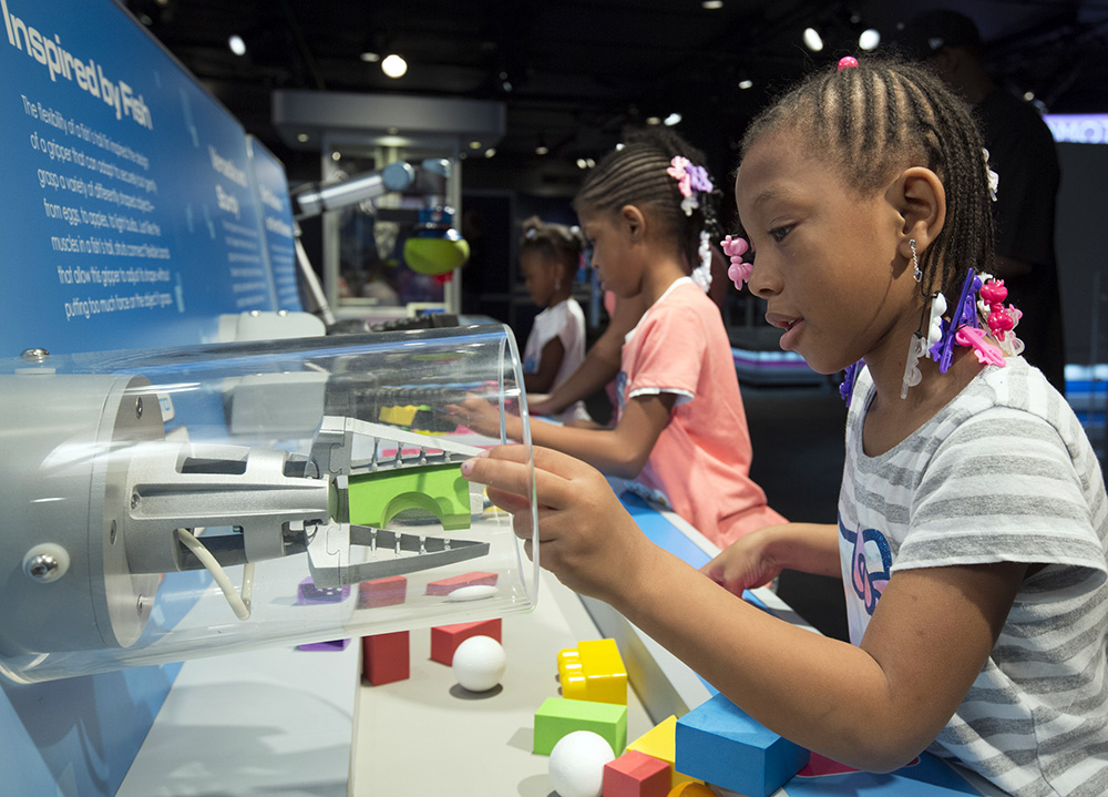Museum guests can see how a variety of robotic grippers, like the FESTO Fin Gripper, can pick up an array of everyday objects. Photo by J.B. Spector, Museum of Science and Industry.“Robotics is a truly fascinating field—and it’s one that is growing exponentially,” said David Mosena, president and CEO of the Museum of Science and Industry, Chicago. “This exhibit, in a fun and engaging way, helps answer questions like: How do robots work? How will they potentially change our lives? How can I get involved in robotics? We are thrilled to bring this cutting-edge content to MSI and to tour it to other science museums around the nation.”