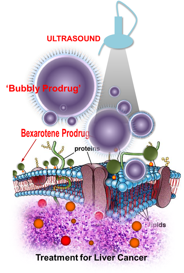 “Liver cancer is normally difficult to attack and usually requires significant surgical intervention,” stated Santosh Misra, a postdoctoral research associate in Pan’s laboratory and first author of the paper, “Trimodal Therapy: Combining Hyperthermia with Repurposed Bexarotene and Ultrasound for Treating Liver Cancer,” published in ACS Nano, the premier nanotechnology journal of the American Chemical Society. “In this study, we successfully re-purposed and repackaged bexarotene into a sensitive nanobubble form, inserted it directly into the tumor using a flexible catheter, and used ultrasound ablation therapy to ‘pop’ the bubbles to release the agent.”