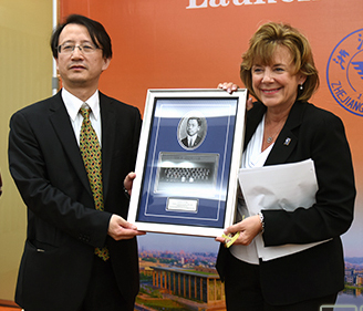 Chancellor Barbara Wilson presented a commemorative photo plaque of prominent Chinese meteorologist, geologist, and educator Chu Kochen to ZJU President Wu Zhaohui. A former president of Zhejiang University, Chu came to United States in 1910 to continue his education, graduating from College of Agriculture at Illinois in 1913. Students will be taught by faculty from Zhejiang University and from Illinois. Faculty will be trained to Illinois’ highest standards, and all new faculty members will complete a carefully designed, one-year development program.