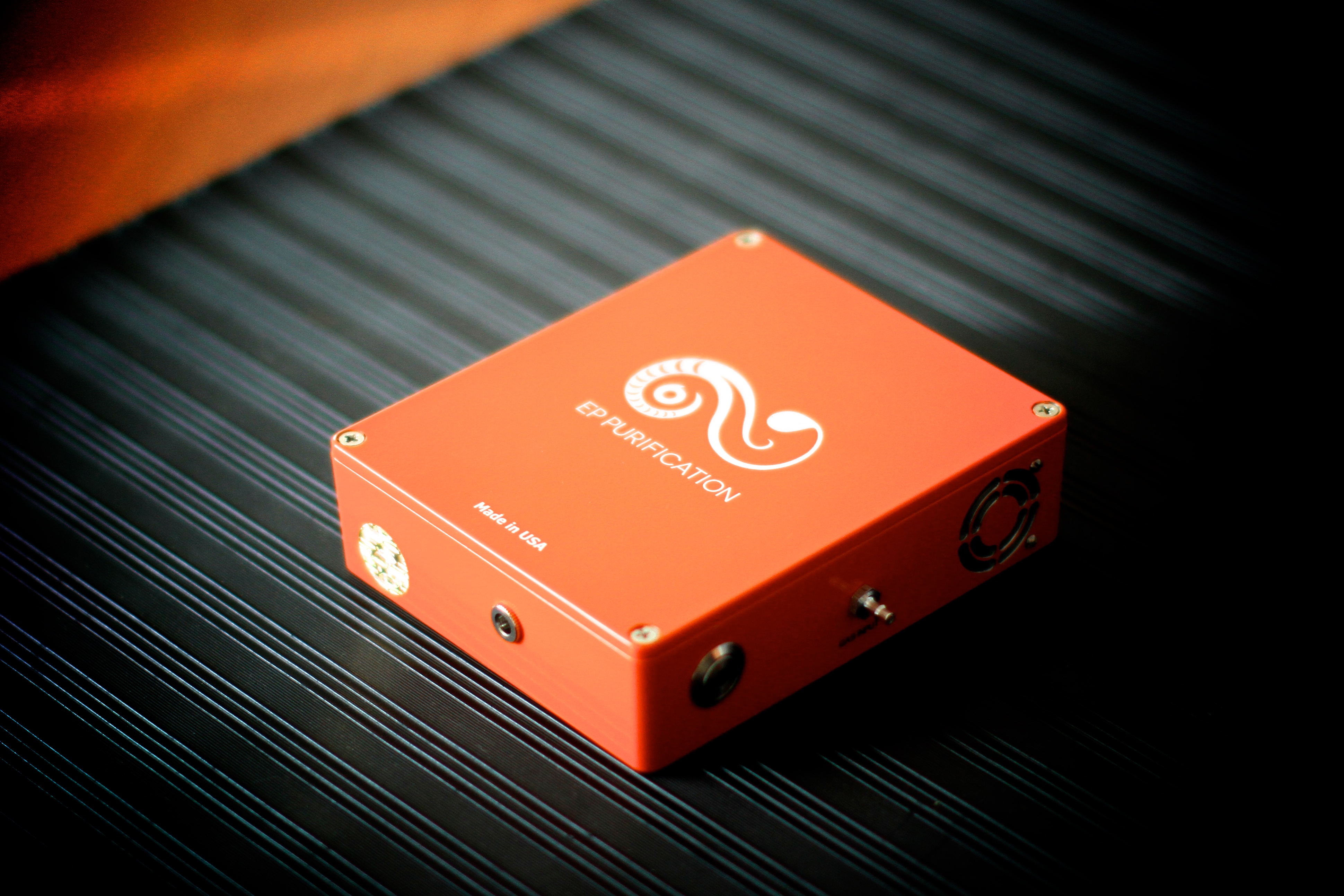 EP Purification takes oxygen from natural air or, in some cases, concentrated oxygen and runs it through microchannels on a microplasma chip, creating ozone. The company uses ozone generation for the disinfection of drinking water and for the treatment of wastewater. The amount of ozone needed for each use determines how many chips are installed in a module. An individual family of four, for example, would need just one chip; for a larger project (such as the disinfection of water for a village), up to six chips can be placed into a module, and more than one module might be required.