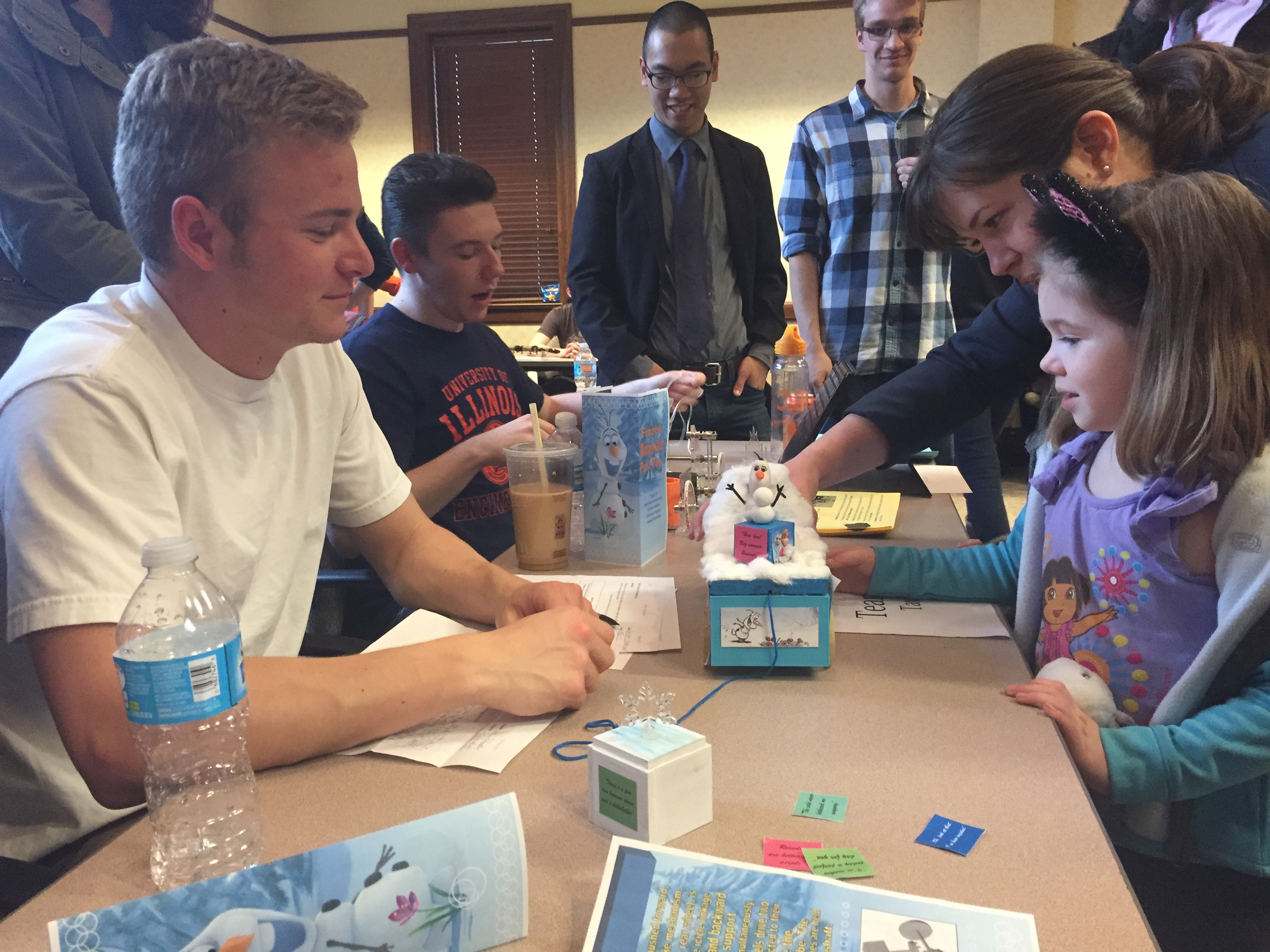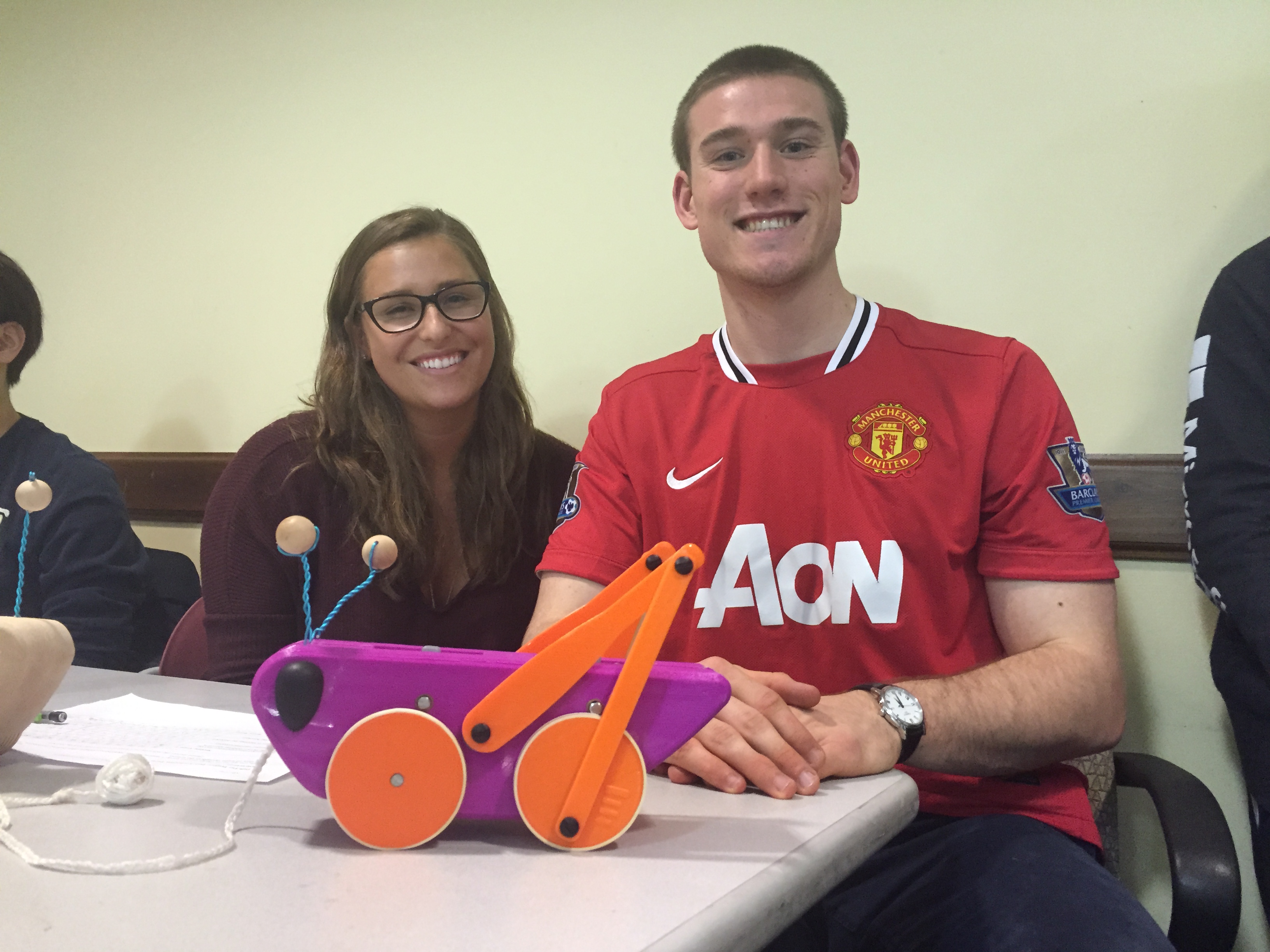 One team has been working with the staff at Curtis Orchard to design a custom pull toy for them. After discussions with the staff, that team decided to use a Wizard of Oz theme currently present there and to mount the toy for an existing wagon. Some teams had a pull-toy that uses the energy from being pulled to produce a useful function like making a cup of coffee, other toys are simply hilarious mechanisms.