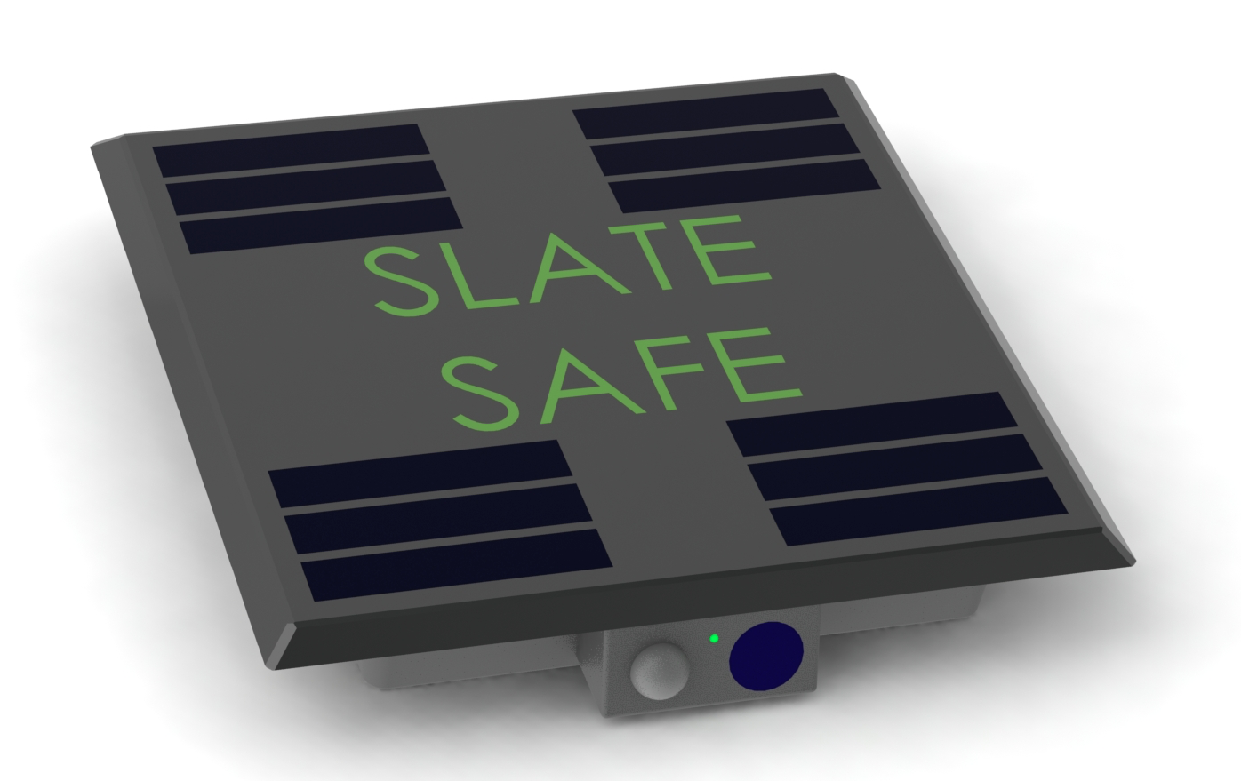 Other technology behind Slate Safe would include solar cells, eliminating the need for charging; a Wi-Fi module, which would send notification to the owner's mobile phone when packages are removed as well as when they arrive; and radio frequency identification (RFID) sensors, which activates via a key fob to allow package access.