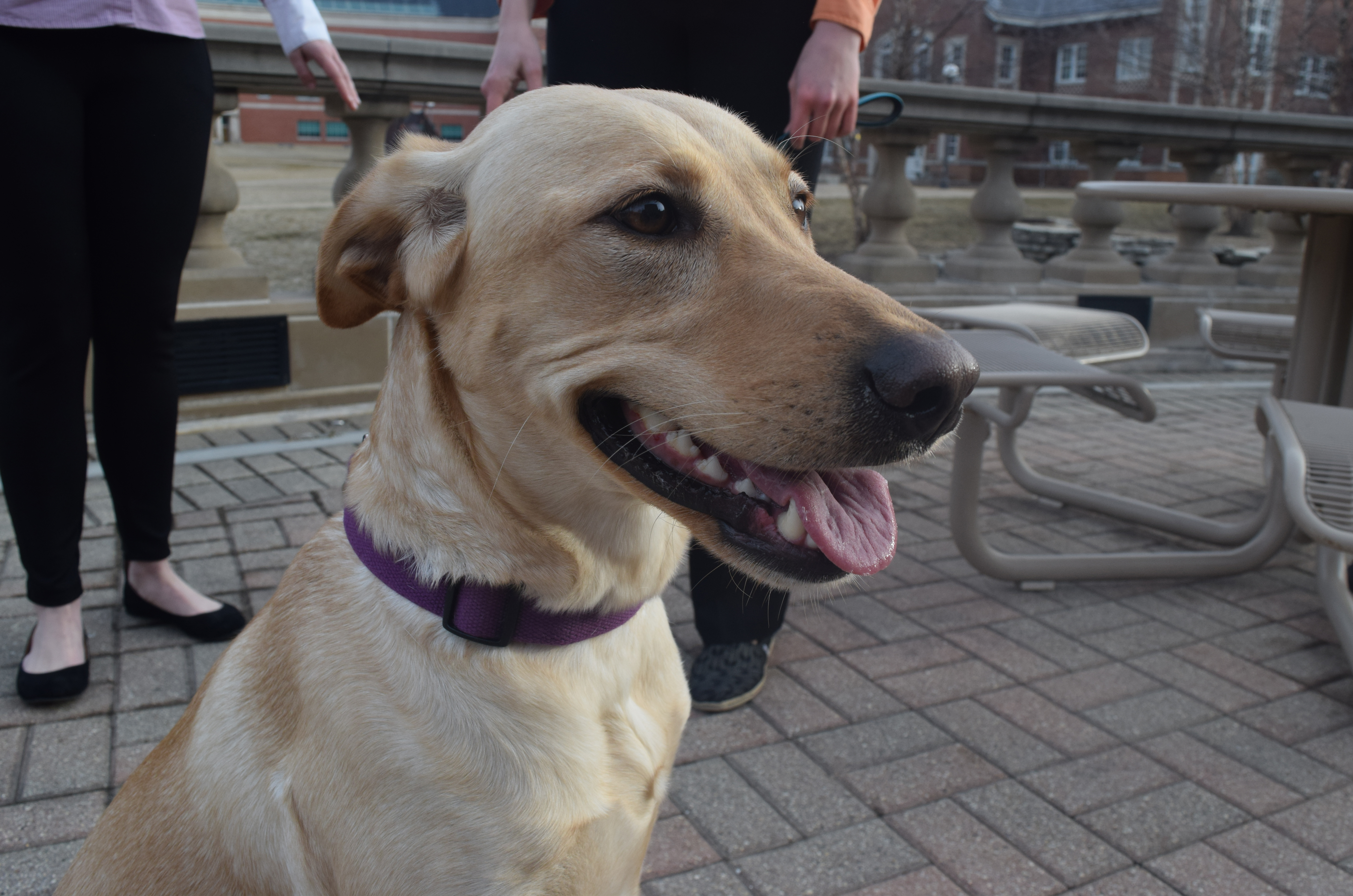 JA: I’ve been working on EEG projects for the past four years, three of those in EOH. We used to use EEG to play video games. Freshman year we played Pong, where we put the electrode on a person and every time they thought really hard the pong paddle would move up. The next year Matthew and I lead a team that played Galaga. These both combined EMG, which is muscle movement, and EEG. In Galaga, flexing right was going right, flexing left is going left, and thinking was shooting the laser. I realized the most interesting part of both of these was the brain part. So last fall I was considering if I wanted to do another EOH project, and decided yes, but this time to use a dog. With my past experience and doing some research online, I found information about 3D printed electrodes, but I couldn’t find anything about talking dogs. This all just lead me to thinking about making a Dug the dog collar from “Up.” A few days later, Bliss texted me about doing a project together, and I was like “yeah, want to make a talking dog collar with me?” We then added in Matthew because he had four years of EEG experience. We also needed someone with strong 3D printing and CAD experience, so we recruited Amanda from BSME. We have four more team members that all contributed different things and were integral to the project.
