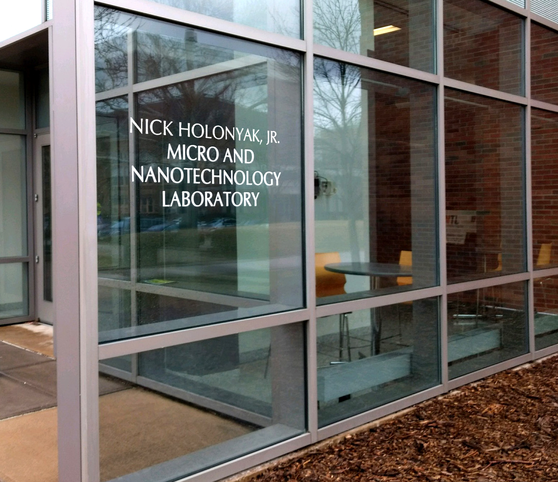 Opened in 1989, the Micro and Nanotechnology Laboratory was widely known for its excellence in III-V compound semiconductor device and processing research. Over the years, the mission of the facility located at 208 North Wright Street in Urbana, has broadened to include advances that intersect engineering and other fields. Its faculty and students are conducting research that advances a broad range of applications, including high-speed data communications, high-efficiency lighting, solar power, flexible electronics, biosensors for drug discovery, biomedical imaging, disease diagnostics, vaccine delivery strategies, environmental monitoring, and novel microelectronics/photonics concepts for next-generation computing architectures.