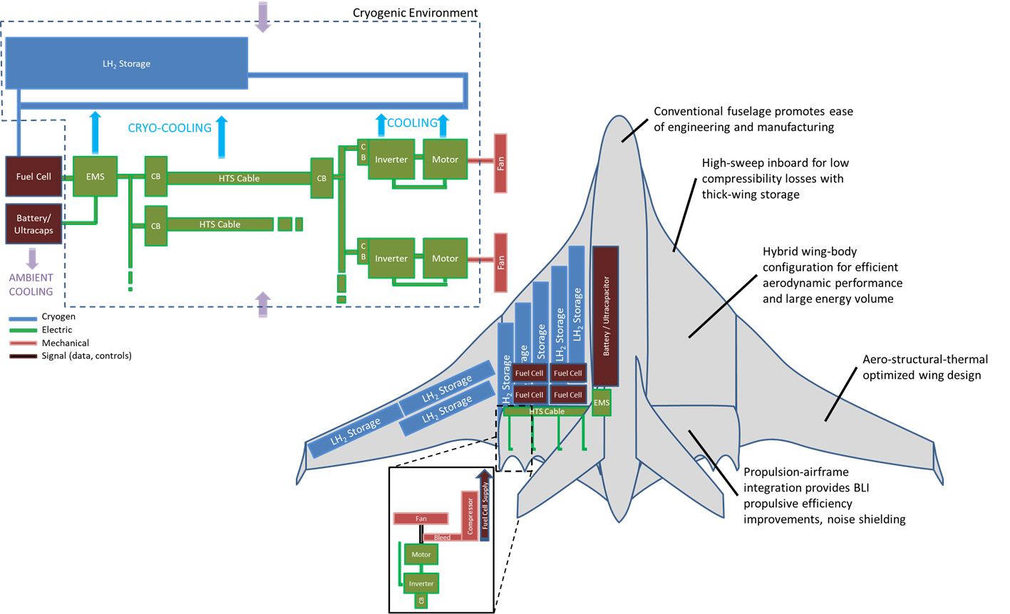 “Essentially, the program focuses on the development of a fully electric aircraft platform that uses cryogenic liquid hydrogen as an energy storage method,” said Phillip Ansell, assistant professor in the Department of Aerospace Engineering at Urbana-Champaign and principal investigator for the project. “The hydrogen chemical energy is converted to electrical energy through a series of fuel cells, which drive the ultra-efficient electric propulsion system. The low temperature requirements of the hydrogen system also provide opportunities to use superconducting, or lossless, energy transmission and high-power motor systems.