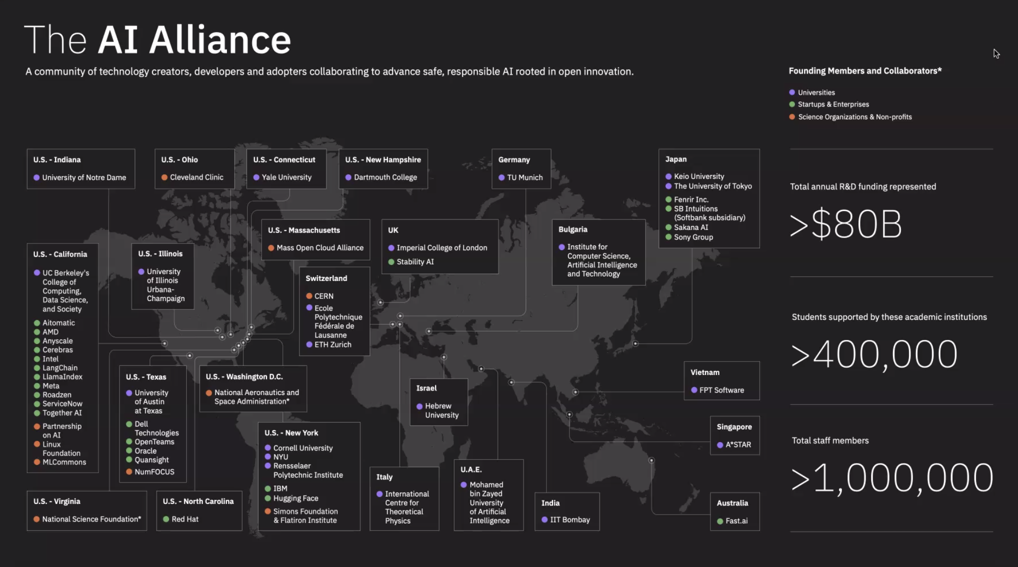 Members of the AI Alliance believe that open innovation is essential to develop and achieve safe and responsible AI that benefits society rather than a select few. Through this partnership, we envision:
